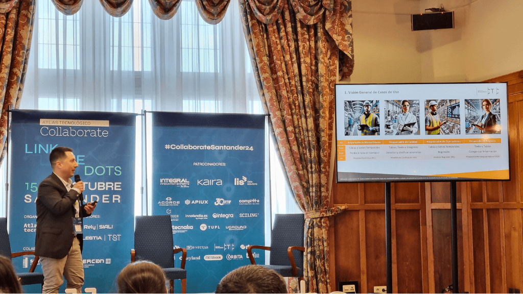 “Estamos trabajando en un sistema sencillo y que permita una amplia adopción por parte de las empresas industriales de Cantabria”, indicó Abraham Casas durante su participación en el evento “Collaborate Link the Dots Santander 2024”. El director de Tecnología de CTC participó en esta cita organizada por Atlas Tecnológico y explico cómo automatizar las partes más complejas del proceso “permite que cualquier profesional pueda utilizar inteligencia artificial en su trabajo diario, sin necesidad de un profundo conocimiento técnico”. “Democratizar el acceso de las fábricas a la IA es fundamental para que la industria cántabra evolucione”, indicó el ponente.
