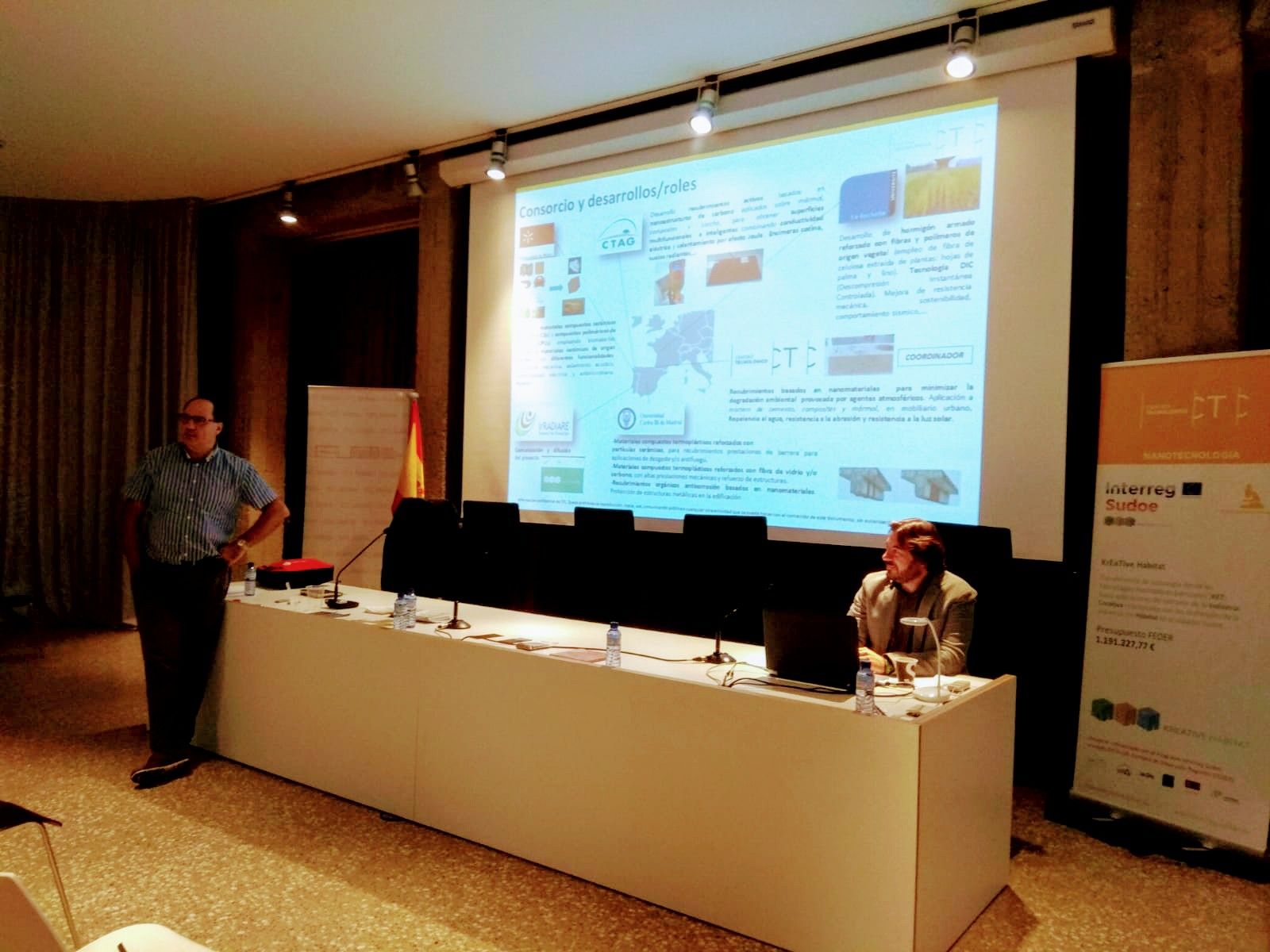 José Luis Ruiz, responsable de Proyectos y Transferencia Tecnológica, y Ángel Yedra, responsable de Materiales Avanzados y Nanomateriales del Centro Tecnológico CTC, han sido los encargados de explicar a los arquitectos cántabros los importantes avances conseguidos durante la ejecución del proyecto europeo KrEaTive Habitat: una investigación liderada por CTC, en la que COACAN ha desempeñado el rol de socio asociado.