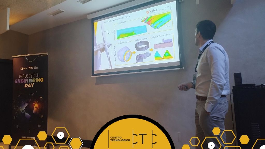 Durante el evento, que contó con la participación de representantes de ESSS Iberia, ANSYS y diversas empresas de ingeniería, González expuso cómo la simulación se ha convertido en una herramienta clave dentro de los procesos de innovación que impulsa CTC. En su intervención, abordó las distintas líneas de trabajo de CTC en este ámbito, que abarcan desde el análisis CFD (Fluidodinámica Computacional) hasta el análisis estático y dinámico de estructuras, así como la simulación de materiales complejos y procesos multifísicos.
