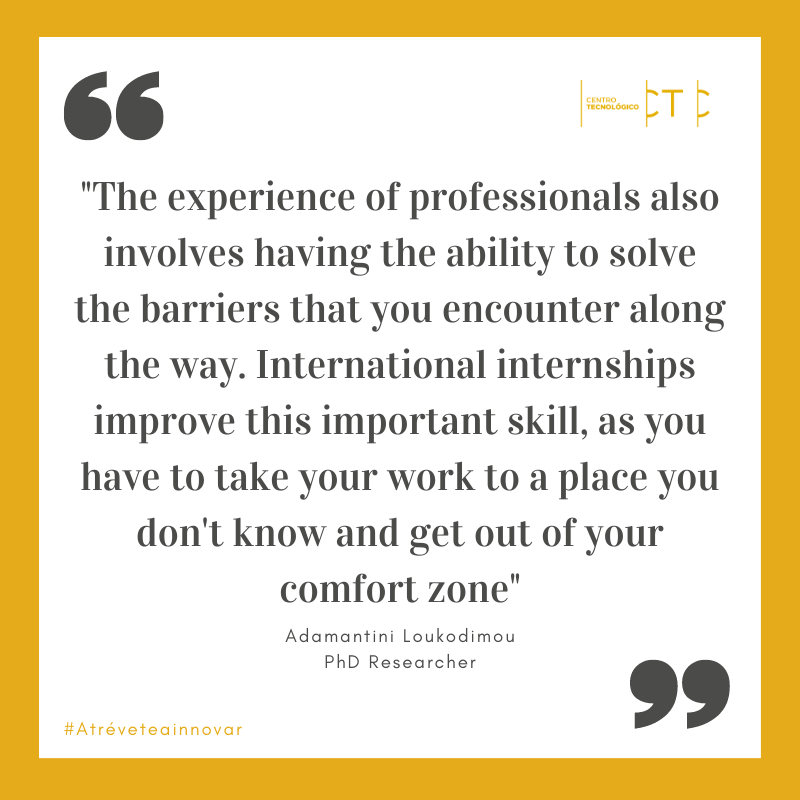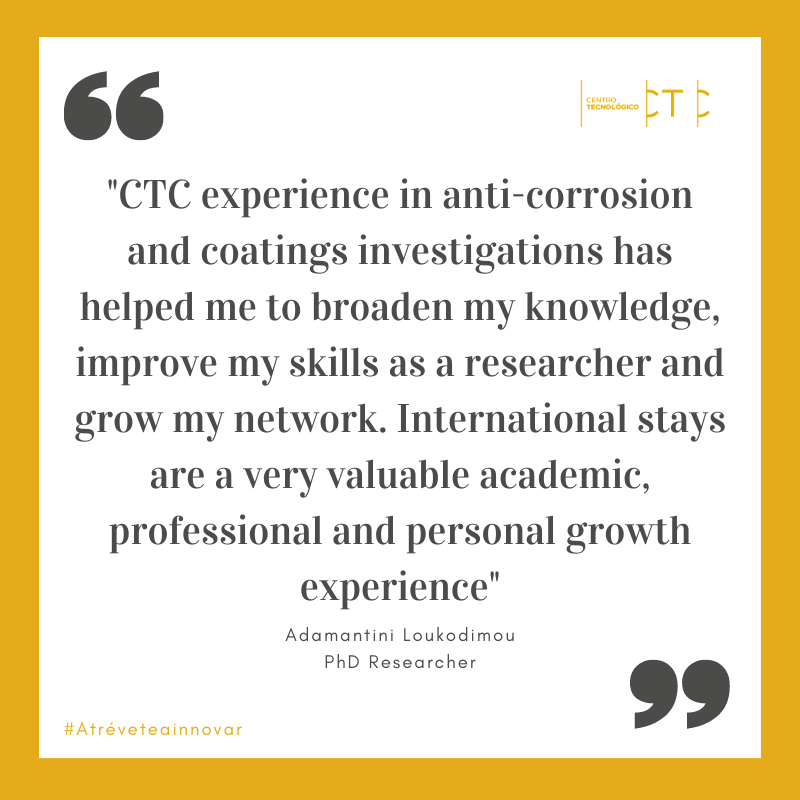 The centre has extensive experience in this field of work, which has helped me to broaden my knowledge on coatings and corrosion develop, improve my skills as a researcher and grow my network. Also, working under the supervision of experts on their field has helped me to learn how to solve better different problems that have arisen during the process.