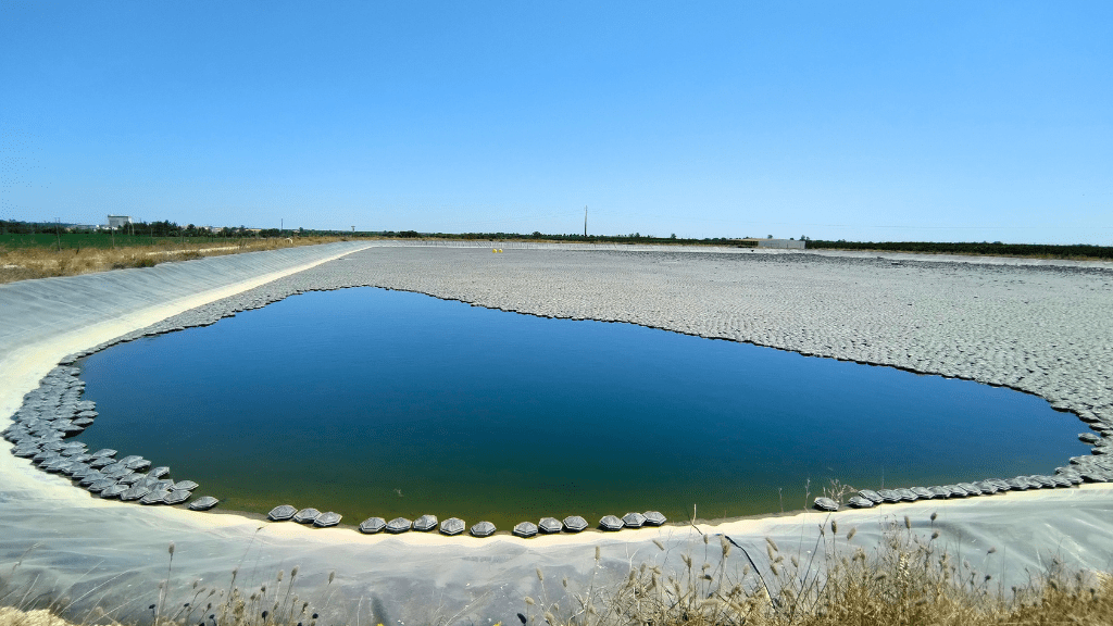 The primary objective of LIFE H2OLOCK is to reduce water evaporation from these basins to 80-85%, compared to the 75-80% reduction achieved by existing solutions on the market. The project anticipates minimising algae growth without relying on algaecides and generating renewable energy for irrigation systems through the installation of solar panels on the covers that will shield the ponds.